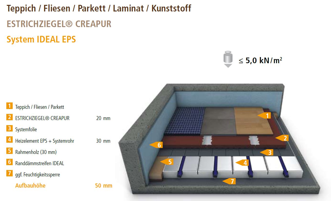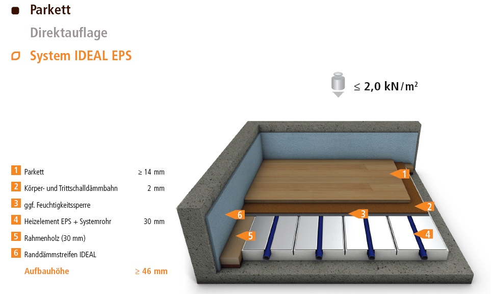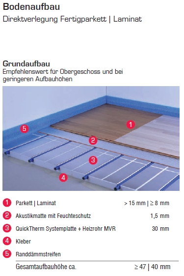 Fußbodenaufbau für Jupiter-IDEAL und System QuickTherm